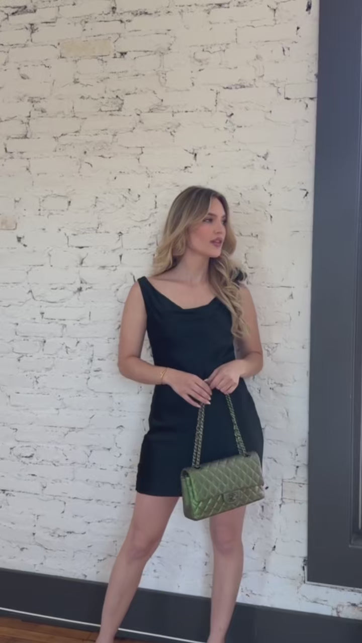 This Chanel Medium Classic Double Flap Bag is crafted from quilted iridescent green Lambskin leather with ruthenium hardware, adjustable chain-link shoulder straps and flat pocket at back. Leather lining with flat pockets at interior and CC turn-lock closure at front. Includes dust bag and authenticity card. From the 2016-2017 Collection by Karl Lagerfeld.