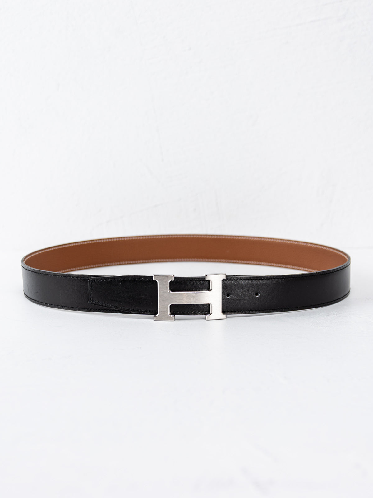 This Hermès Reversible H Belt Kit is crafted from gold Togo calfskin and black Box leather. Featuring white contrast stitching and brushed palladium H buckle with peg in hole closure. Includes dust bag and box.